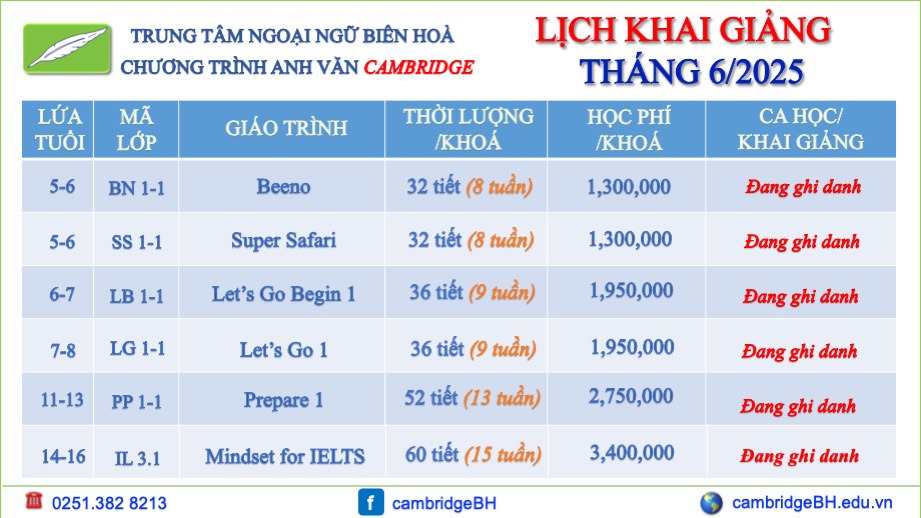 CHƯƠNG TRÌNH ANH VĂN CAMBRIDGE